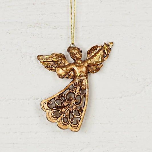CC Polyresin Golden Flying Angel Ornament- 4.5" x 3"