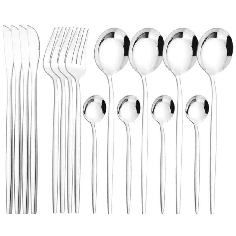 • 16-piece set for four, including 4 knives, 4 forks, 4 large spoons, and 4 small spoons